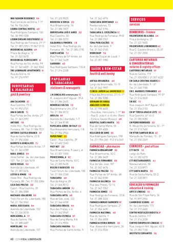 SERVIÇOS services BOMBEIROS · firemen VOLUNTÁRIOS DA AJUDA 4 H Praça da Alegria, 27 Tel. 21 321 9400 VOLUNTÁRIOS LISBONENSES 4 C Rua C. Castelo Branco, 33-37 Tel. 21 351 2500
