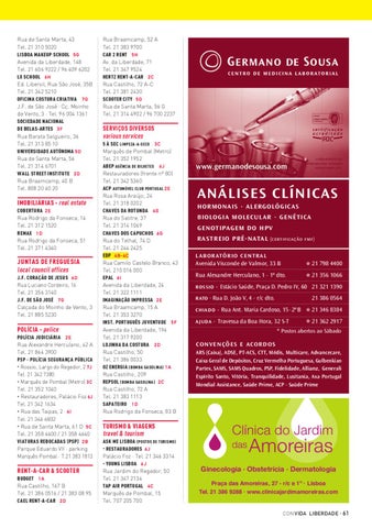 Ginecologia · Obstetrícia · Dermatologia Praça das Amoreiras, 27 - r/c e 1º · Lisboa Tel. 21 386 9288 · www.clinicajardimamoreiras.com CON VIDA LIBERDADE · 61