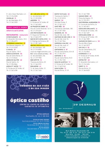 R. Alexandre Herculano, 33 A Tel. 21 354 6079 39 Degraus (Cinemateca) 3 F