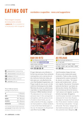 Para listagem completa de restaurantes consulte a página 64. For a complete list of restaurants refer to page 64.
