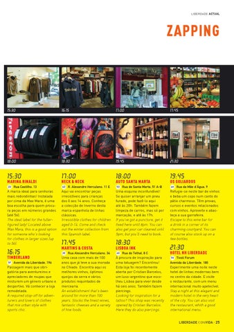 Timberland Avenida da Liberdade, 196 Passagem mais que obrigatória para aventureiros e apreciadores de roupas que misturem um género urbano e desportivo. Vá conhecer a loja remodelada. A required stop-off for adventurers and lovers of clothes that mix urban style with sports chic. 5F