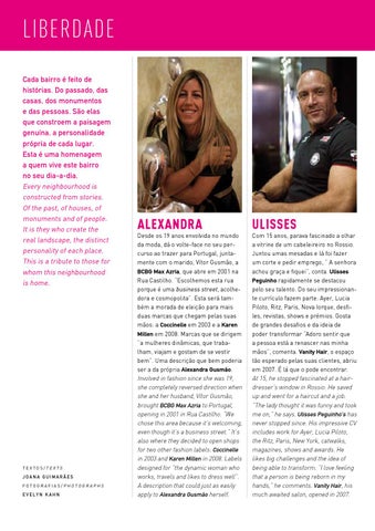 Liberdade Cada bairro é feito de histórias. Do passado, das casas, dos monumentos e das pessoas. São elas que constroem a paisagem genuína, a personalidade própria de cada lugar. Esta é uma homenagem a quem vive este bairro no seu dia-a-dia. Every neighbourhood is constructed from stories. Of the past, of houses, of monuments and of people. It is they who create the real landscape, the distinct personality of each place. This is a tribute to those for whom this neighbourhood is home.