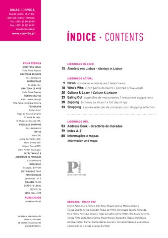 News novidades e destaques / latest news Who’s Who cinco perfis do bairro / portrait of five locals Cultura & Lazer / Culture & Leisure Eating Out sugestões de restaurantes / restaurant suggestions Zapping 24 horas de dicas / a full day of tips Shopping a nossa selecção de compras / our shopping selection