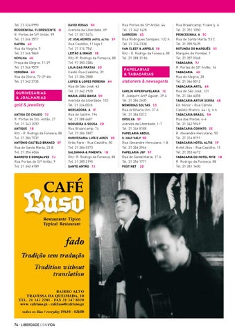 Rua das Pretas, 4-6 Tel. 21 342 5949 Tabacaria Corinto 2 E