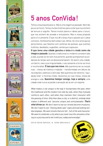 5 anos ConVida ! Temos uma proposta para si. Não é uma viagem ao passado. Nem tão pouco ao futuro. Temos muitas histórias para contar que nos enchem de ternura e orgulho. Temos muitos planos e ideias para o futuro, que nos enchem de vontade e entusiasmo. Mas a nossa proposta para si é o presente. É que nos dê o braço hoje e passeie por Lisboa connosco. Conhecemos bem estas ruas. Afinal, há cinco anos que as percorremos, que falamos com centenas de pessoas, que ouvimos histórias, desabafos, sugestões, sentenças e aplausos.