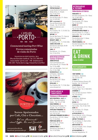 Tel. 21 314 2646 VINTAGE BAZAAR 5F Largo Academia Nacional de Belas Artes, 5 - Chiado Tel. 21 346 7123 VIÚVA ALEGRE 8E Rua da Assunção, 19 - Baixa Tel. 211 579 592 WE3 - LOJA DO CHIADO 4C Rua da Misericórdia, 102 Chiado · Tel. 21 347 2293 www.tmcollection.com WEILL 4B Rua Castilho, 90 · T. 213 874 134 www.weill.com WETANI 1G Rua de São Paulo, 71 - Cais do Sodré · Facebook: Wetani WICKETT JONES 4E R. Castilho, 13 E · T. 21 822 3384 ZADIG & VOLTAIRE 6H Avenida da Liberdade, 84-88 Tel. 21 342 6316 ZARA 6E Rua Garrett, 1-9 - Chiado Tel. 21 324 3710