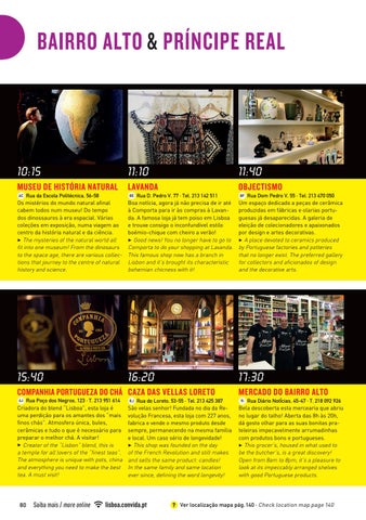 COMPANHIA PORTUGUEZA DO CHÁ CAZA DAS VELLAS LORETO Rua Poço dos Negros, 123 · T. 213 951 614 Criadora do blend “Lisboa”, esta loja é uma perdição para os amantes dos “mais finos chás”. Atmosfera única, bules, cerâmicas e tudo o que é necessário para preparar o melhor chá. A visitar! 3 Creator of the “Lisbon” blend, this is a temple for all lovers of the “finest teas”. The atmosphere is unique with pots, china and everything you need to make the best tea. A must visit! 4J