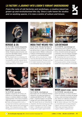 Tel. 213 259 992 · www.lerdevagar.com Uma livraria única no género. Um espaço industrial que alberga milhares de livros, incluindo autores portugueses traduzidos, livros em línguas estrangeiras e exemplares únicos. Imperdível. 3 A bookshop that’s one of a kind. A former industrial facility housing thousands of books, including translated Portuguese authors, foreign language books and unique editions. Unmissable.
