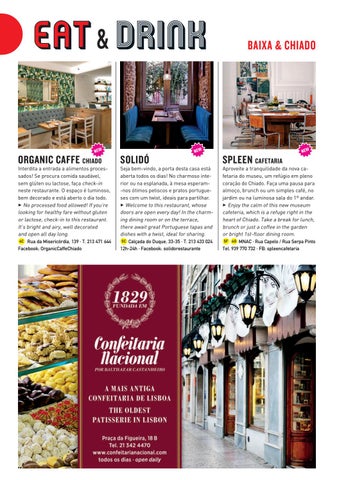 Interdita a entrada a alimentos processados! Se procura comida saudável, sem glúten ou lactose, faça check-in neste restaurante. O espaço é luminoso, bem decorado e está aberto o dia todo. 3 No processed food allowed! If you’re looking for healthy fare without gluten or lactose, check-in to this restaurant. It’s bright and airy, well decorated and open all day long. 4C Rua da Misericórdia, 139 · T. 213 471 644 Facebook: OrganicCaffeChiado