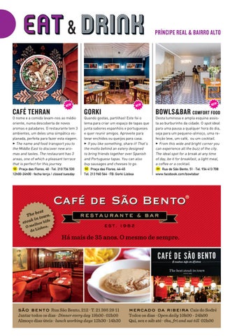 Quando gostas, partilhas! Este foi o lema para criar um espaço de tapas que junta sabores espanhóis e portugueses e quer reunir amigos. Aproveite para levar enchidos ou queijos para casa. 3 If you like something, share it! That’s the motto behind an eatery designed to bring friends together over Spanish and Portuguese tapas. You can also buy sausages and cheeses to go. 5E Praça das Flores, 44-45 Tel. 213 960 564 · FB: Gorki Lisboa