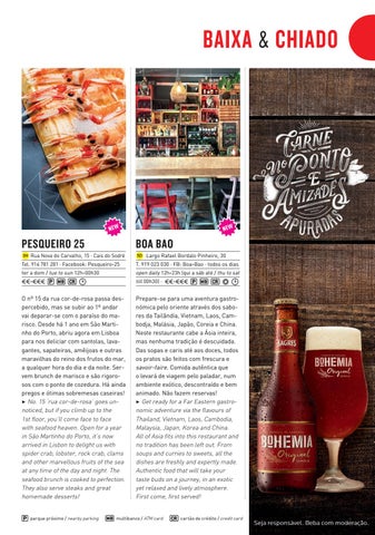 O nº 15 da rua cor-de-rosa passa despercebido, mas se subir ao 1º andar vai deparar-se com o paraíso do marisco. Desde há 1 ano em São Martinho do Porto, abriu agora em Lisboa para nos deliciar com santolas, lavagantes, sapateiras, amêijoas e outras maravilhas do reino dos frutos do mar, a qualquer hora do dia e da noite. Servem brunch de marisco e são rigorosos com o ponto de cozedura. Há ainda pregos e ótimas sobremesas caseiras! 3 No. 15 ‘rua cor-de-rosa’ goes unnoticed, but if you climb up to the 1st floor, you’ll come face to face with seafood heaven. Open for a year in São Martinho do Porto, it’s now arrived in Lisbon to delight us with spider crab, lobster, rock crab, clams and other marvellous fruits of the sea at any time of the day and night. The seafood brunch is cooked to perfection. They also serve steaks and great homemade desserts!