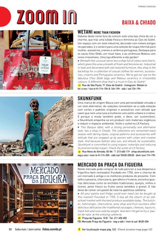 Uma marca de origem Basca com uma personalidade vincada e um look alternativo. As coleções reinventam-se a cada estação com cortes e padrões originais e acessórios com atitude que caem que nem uma luva a mulheres com estilo urbano e criativo. E porque a moda também pode, e deve, ser sustentável, a Skunkfunk empenha-se em produzir com materiais orgânicos e reduzir o impacto ambiental. Visite o outlet na LX Factory. 3 This Basque label, with a strong personality and alternative look, has a shop in Chiado. The collections are reinvented every season with daring styles, original patterns and accessories with attitude that are snapped up by women with urban and creative style. And because fashion also can, and should, be sustainable, Skunkfunk is committed to using organic materials and reducing its environmental impact. Check the outlet at LX Factory. 4i Rua Nova do Almada, 82-84 · T. 213 460 119 · shop.skunkfunk.com seg a sex / mon to fri 11h-20h · sáb /sat 10h30-20h30 · dom /sun 11h-19h