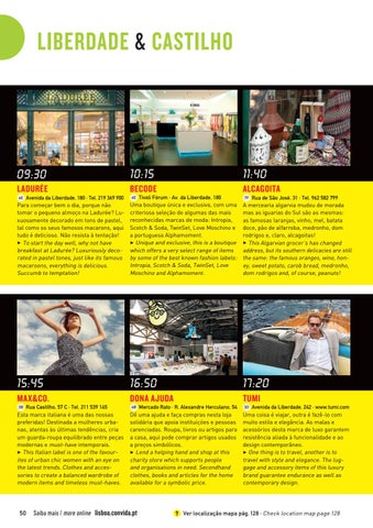 Avenida da Liberdade, 180 · Tel. 219 369 900 Para começar bem o dia, porque não tomar o pequeno almoço na Ladurée? Luxuosamente decorado em tons de pastel, tal como os seus famosos macarons, aqui tudo é delicioso. Não resista à tentação! 3 To start the day well, why not have breakfast at Ladurée? Luxuriously decorated in pastel tones, just like its famous macaroons, everything is delicious. Succumb to temptation!