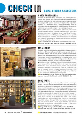 Fundada em 2007 em Lisboa, esta loja foi uma das criações mais geniais dos últimos anos! Ressuscitou e deu uma montra aos produtos que faziam parte de todas as casas portuguesas, assumindo o papel de guardiã das nossas tradições e fiel depositária da alma lusa. No Porto, ocupa o belíssimo primeiro andar da centenária loja Fernandes Mattos, onde se encontram genuínos e deliciosos produtos de criação e fabricação portuguesa. 3 Founded in 2007 in Lisbon, this is one of the most genius shops opened in recent years! It is a showcase for products which were once common in every Portuguese home, a guardian of the country’s traditions and a faithful depositary of the Lusitanian spirit. In Porto, its display of authentic and delicious products designed and made in Portugal can be found on the gorgeous first floor of the Fernandes Mattos shop. T4 Rua Galeria de Paris 20 - 1º (Baixa) · www.avidaportuguesa.com Tel. 222 022 105 · seg a sáb / mon to sat 10h-20h & dom / sun 11h-19h