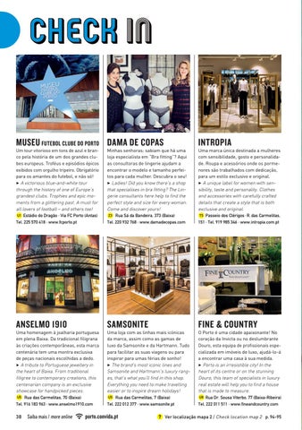 Um tour vitorioso em tons de azul e branco pela história de um dos grandes clubes europeus. Troféus e episódios épicos exibidos com orgulho tripeiro. Obrigatório para os amantes do futebol, e não só! 3 A victorious blue-and-white tour through the history of one of Europe’s grandest clubs. Trophies and epic moments from a glittering past. A must for all lovers of football – and others too! U1 Estádio do Dragão · Via FC Porto (Antas) Tel. 225 570 418 · www.fcporto.pt