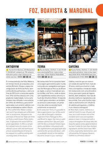 É o restaurante do chef Vitor Matos e, em tempo record, já conquistou uma estrela Michelin. Ocupa o espaço do antigo Solar do Vinho do Porto, bem conhecido dos portuenses, e abriu no final de 2015 com a merecida expetativa. Uma cozinha clássica com uma pitada de modernidade, numa carta simples mas refinada e uma seleção de vinhos de referência, para serem apreciadas num cenário sublime com vistas arrebatadoras sobre o Douro. 3 This is Chef Vitor Matos’s restaurant and it has already won a Michelin star in record time. Housed on the premises of the former Solar do Vinho do Porto, a well-known Porto institution, it opened at the end of 2015 to great expectation. It offers a simple but refined menu of a fusion of traditional cuisine with new techniques and an outstanding list of wines to be enjoyed in a sublime setting with stunning views of the Douro.