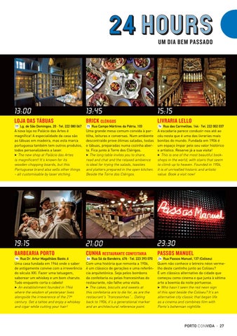 Z4 Rua Passos Manuel, 137 (Coliseu) Quem não conhece o letreiro néon vermelho deste cantinho junto ao Coliseu? É um clássico alternativo da cidade que começou como cinema e que junta à sétima arte a boemia da noite portuense. 3 Who hasn’t seen the red neon sign of this spot beside the Coliseu? It’s an alternative city classic that began life as a cinema and combines film with Porto’s bohemian nightlife.