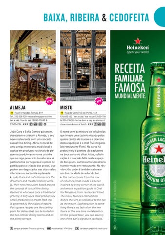O nome vem da mistura de influências que invade uma cozinha viajada pelos quatro cantos do mundo e o cicerone desta expedição é o chef Rui Mingatos (do restaurante Flow). Na carta há pratos frios e quentes tão sedutores na boca como no olhar. Aliás, sofisticação é o que não falta neste espaço de dois pisos, outrora uma serralharia transformada em restaurante. No rés-do-chão poderá também saborear um dos cocktails de autor do bar. 3 The name comes from the mix of influences that invade a kitchen inspired by every corner of the world, and whose expedition guide is Chef Rui Mingatos (from restaurant Flow). The menu features cold and hot dishes that are as seductive to the eye as the mouth. Sophistication is something there’s no lack of on the two floors of this one time metalsmith’s. On the ground floor, you can also try one of the bar’s signature cocktails.