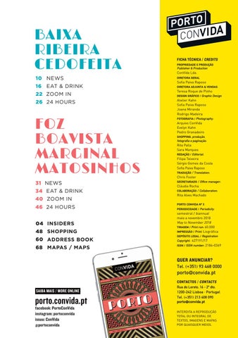 FOZ BOAVISTA MARGINAL MATOSINHOS 31 NEWS 34 EAT & DRINK 40 ZOOM IN 46 24 HOURS 04 INSIDERS 48 SHOPPING 60 ADDRESS BOOK 68 MAPAS / MAPS