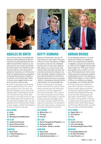 ★ Vogue Café (p.16) ★ The Yeatman ★ Flow ★ Taylor’s Port tour ★ Torre dos Clérigos ★ Running along the Douro River ★ Fernandes Mattos & Ca. ★ On-Wine Garrafeira ★ Lost & Found (p.46) PORTO CON VIDA · 5