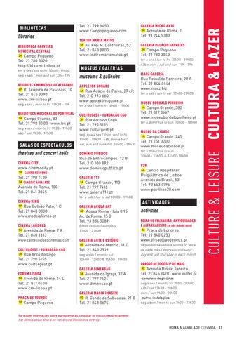 Culturgest - Fundação CGD 3H Rua Arco do Cego Tel. 21 790 5155 www.culturgest.pt Forum Lisboa 5G Avenida de Roma, 14 L Tel. 21 817 0400 www.cm-lisboa.pt Praça de Touros 2G Campo Pequeno