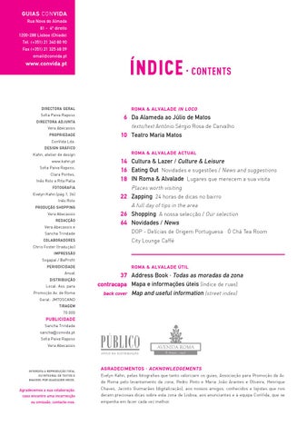 AGRADECIMENTOS · ACKNOWLEDGEMENTS Evelyn Kahn, pelas fotografias que tanto valorizam os guias, Associação para Promoção da Av. de Roma pelo levantamento da zona, Pedro Pinto e Maria João Arantes e Oliveira, Henrique Chaves, Jacinto Guimarães (digitalização), aos nossos amigos, conhecidos e lojistas que nos deram preciosas dicas sobre esta zona de Lisboa, aos anunciantes e à equipa ConVida, que se empenha em fazer cada vez melhor.