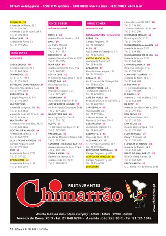 Avenida de Roma, 85 C Tel. 21 796 7581 • Avenida 5 de Outubro 269 A Tel. 21 780 0530 •
