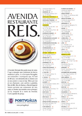 Avenida de Madrid, 9 D Tel. 21 848 4827 Cegonhas, As 3F Tv. Henrique Cardoso, 52 A Tel. 21 797 8966