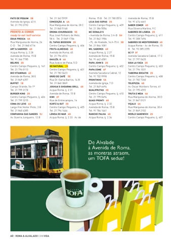 Avenida de Roma, 3 A-B 5 H Tel. 21 842 1984 • Pç. de Alvalade, 14 A-15 A 3 B Tel. 21 846 1081