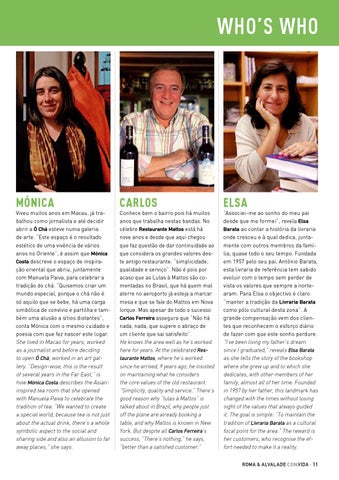 “Associei-me ao sonho do meu pai desde que me formei”, revela Elsa Barata ao contar a história da livraria onde cresceu e à qual dedica, juntamente com outros membros da família, quase todo o seu tempo. Fundada em 1957 pelo seu pai, António Barata, esta livraria de referência tem sabido evoluir com o tempo sem perder de vista os valores que sempre a nortearam. Para Elsa o objectivo é claro: “manter a tradição da Livraria Barata como pólo cultural desta zona”. A grande compensação vem dos clientes que reconhecem o esforço diário de fazer com que este sonho perdure. “I’ve been living my father’s dream since I graduated,” reveals Elsa Barata as she tells the story of the bookshop where she grew up and to which she dedicates, with other members of her family, almost all of her time. Founded in 1957 by her father, this landmark has changed with the times without losing sight of the values that always guided it. The goal is simple: “To maintain the tradition of Livraria Barata as a cultural focal point for the area.” The reward is her customers, who recognise the effort needed to make it a reality. ROMA & ALVALADE con vida · 11