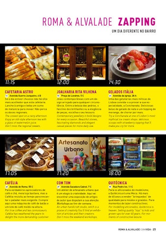Avenida Guerra Junqueiro, 6 B Se o dia estiver chuvoso não há sítio mais acolhedor que esta cafetaria. Lanche à antiga e beba um sumo de melancia para inovar. Não perca os doces regionais. The cosiest spot on a rainy afternoon. Enjoy an old-style afternoon tea with a glass of watermelon juice. Don’t miss the regional sweets.