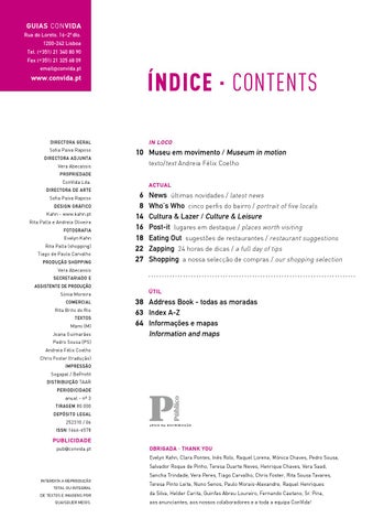 News últimas novidades / latest news Who’s Who cinco perfis do bairro / portrait of five locals Cultura & Lazer / Culture & Leisure Post-it lugares em destaque / places worth visiting Eating Out sugestões de restaurantes / restaurant suggestions Zapping 24 horas de dicas / a full day of tips Shopping a nossa selecção de compras / our shopping selection