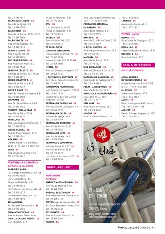 Av. Guerra Junqueiro, 19 B 5 J Tel. 21 840 0536 • Centro de Lazer do Campo Pequeno - lj. 106