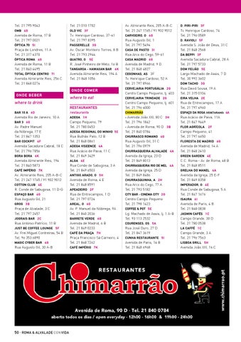 Avenida de Madrid, 9 D Tel. 21 848 4827 Cegonhas, As 3F Tv. Henrique Cardoso, 52 A Tel. 21 797 8966