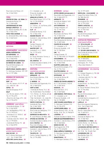 correios · post offices • Avenida da Igreja, 13 5A Tel. 21 842 8690 • Av. da República, 99 D 1E Tel. 21 799 5162 • Avenida E U A, 105 B-C 4D Tel. 21 799 5150 • Avenida João XXI, 78 B-C 3H Tel. 21 799 0570 • Avenida de Roma, 9 C 4G Tel. 21 842 8970