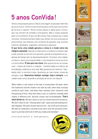 5 anos ConVida ! Temos uma proposta para si. Não é uma viagem ao passado. Nem tão pouco ao futuro. Temos muitas histórias para contar que nos enchem de ternura e orgulho. Temos muitos planos e ideias para o futuro, que nos enchem de vontade e entusiasmo. Mas a nossa proposta para si é o presente. É que nos dê o braço hoje e passeie por Lisboa connosco. Conhecemos bem estas ruas. Afinal, há cinco anos que as percorremos, que falamos com centenas de pessoas, que ouvimos histórias, desabafos, sugestões, sentenças e aplausos.