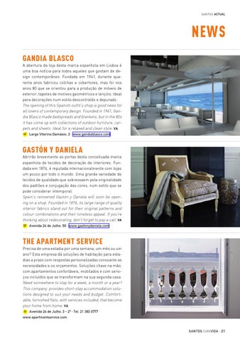 news Gandia Blasco A abertura da loja desta marca espanhola em Lisboa é uma boa notícia para todos aqueles que gostam de design contemporâneo. Fundada em 1941, durante quarenta anos fabricou colchas e cobertores, mas foi nos anos 80 que se orientou para a produção de móveis de exterior, tapetes de motivos geométricos e lençóis. Ideal para decorações num estilo descontraído e depurado. The opening of this Spanish outfit’s shop is good news for all lovers of contemporary design. Founded in 1941, Gandia Blasco made bedspreads and blankets, but in the 80s it has come up with collections of outdoor furniture, carpets and sheets. Ideal for a relaxed and clean style. VA 4F