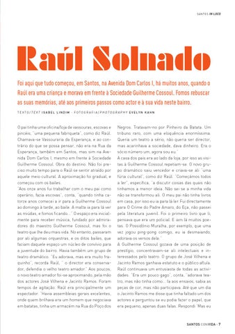 Foi aqui que tudo começou, em Santos, na Avenida Dom Carlos I, há muitos anos, quando o Raúl era uma criança e morava em frente à Sociedade Guilherme Cossoul. Fomos rebuscar as suas memórias, até aos primeiros passos como actor e à sua vida neste bairro. T e x t o / t e x t ISA B E L L INDI M · f o t o g r a f i a / p h o t o g r a p h y e v el y n k a h n