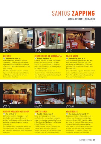 Rua do Olival, 36 Já foi uma padaria mas agora é um acolhedor restaurante. Entre os antigos azulejos e o moderno candeeiro de talheres, descubra uma ementa intemporal. Once a bakery but now a nice restaurant. The tiles are old and the lamps modern, but the menu is timeless. Book your table and try it!