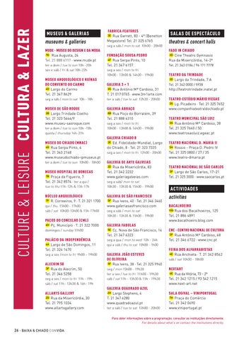 Para obter informações sobre a programação, consultar as instituições directamente. For details about what’s on contact the institutions directly.