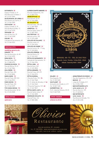da Prata, 193 7 D Tel. 21 342 7560 • R. D. Antão de Almada, 4 F 6A Tel. 21 346 9663 • Praça da Figueira, 5 B 6 B Tel. 21 347 9817 Óptica Santa Justa 6 C