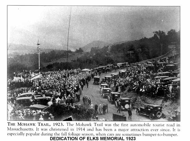 A ten-foot-tall bronze elk statue sits on Whitcomb Summit right on the side of Route 2/The Mohawk Trail. This majestic monument was installed by the Massachusetts Elks Association in 1923 as a dedication to veterans of World War I. The North Adams Transcript estimated that over 10,000 people gathered on that day in June 2023 to witness the unveiling of the elk (Jochem, A). To this day, the golden elk remains an attraction to folks who are passing through the region.