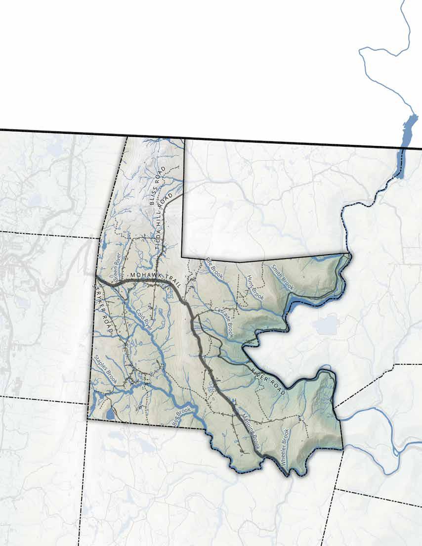Deep gratitude to the many communities and individuals that supported the creation of this report: Faculty and staff from the Conway School; Jill Craig & Andy Vecchio from Conservation Works, LLC; the town representatives from Florida: Joan Lewis (Town Administrator), Timothy Zelazo (Town Select Board), Neil Oleson (Town Select Board), Chief Mike Gleason (Town Fire Department Chief), James White (Town Highway Department), Matthew Cole (Great River Hydro), and Martin McEnvoy (Principal, Abbott Memorial School); Sergeant Andy Canata from the State Police; Emma Sass (Regional MVP Coordinator), Jeffrey Zukowski (State Hazard Mitigation Planner), and Luke Labendz (State DCR Field Operations Team Leader) from the State of Massachusetts; ecologists and foresters Jesse Bellemare, Tom Brule, and Bill Patterson; Dr. Jeff Bendremer (Tribal Historic Preservation Officer) from the Stockbridge-Munsee Community; non-profit stakeholders Angela Sirois (The Nature Conservancy), and Melanie Winters & Nick Pitel (Berkshire Natural Resources Council); Dave Hearn from Crisis Relief and Recovery; and, Raine Brown for sharing the Stanley L. Brown Photo Archive.