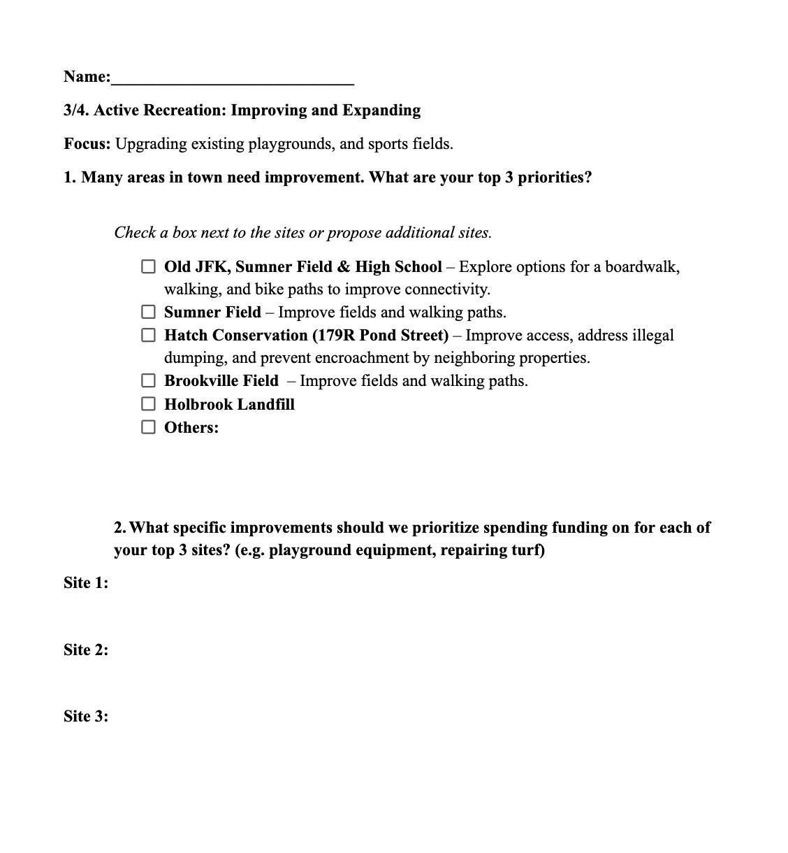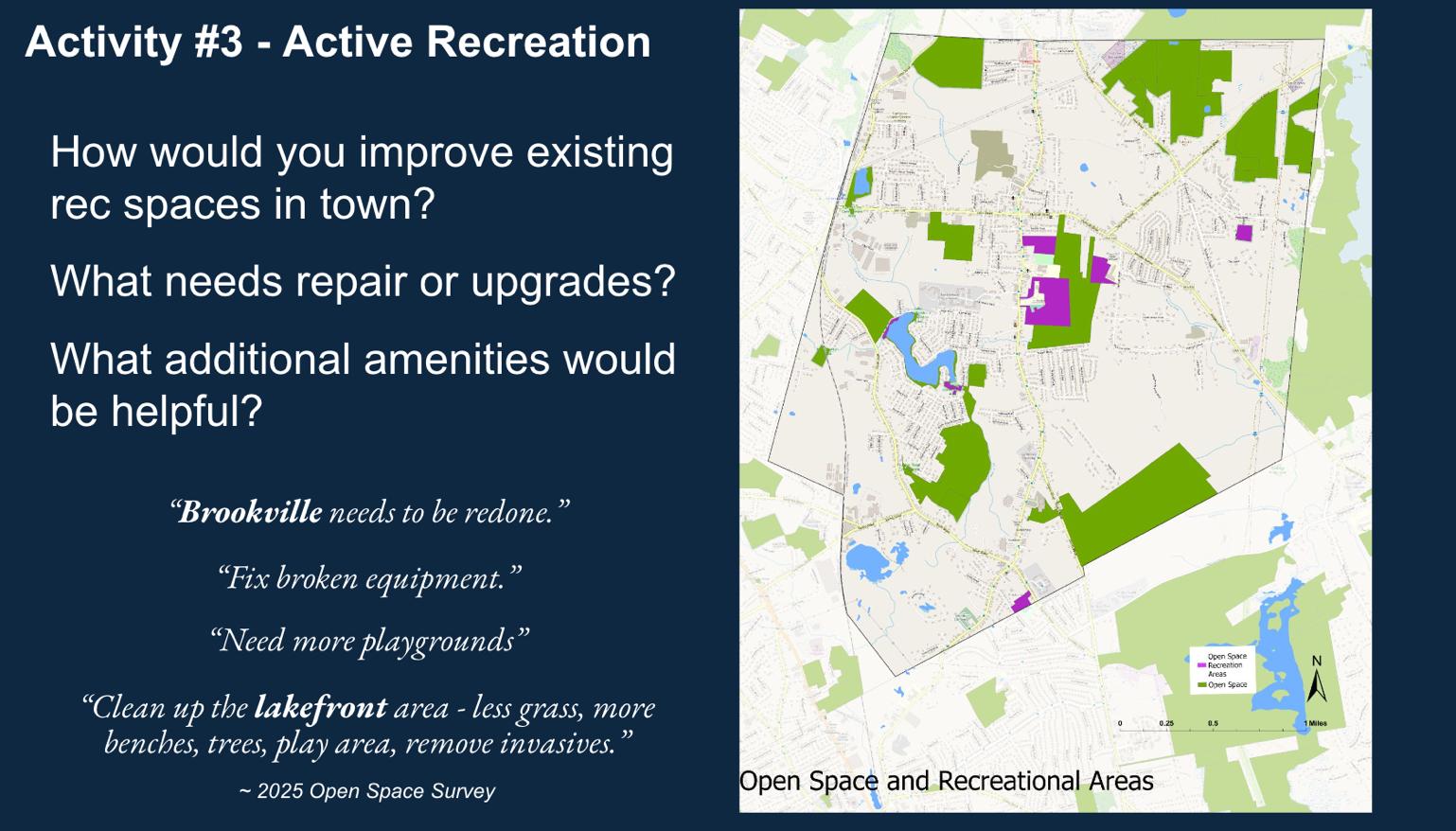 Throughout the public input process, common themes emerged to shape a community vision for Holbrook’s open space and recreational areas that include: