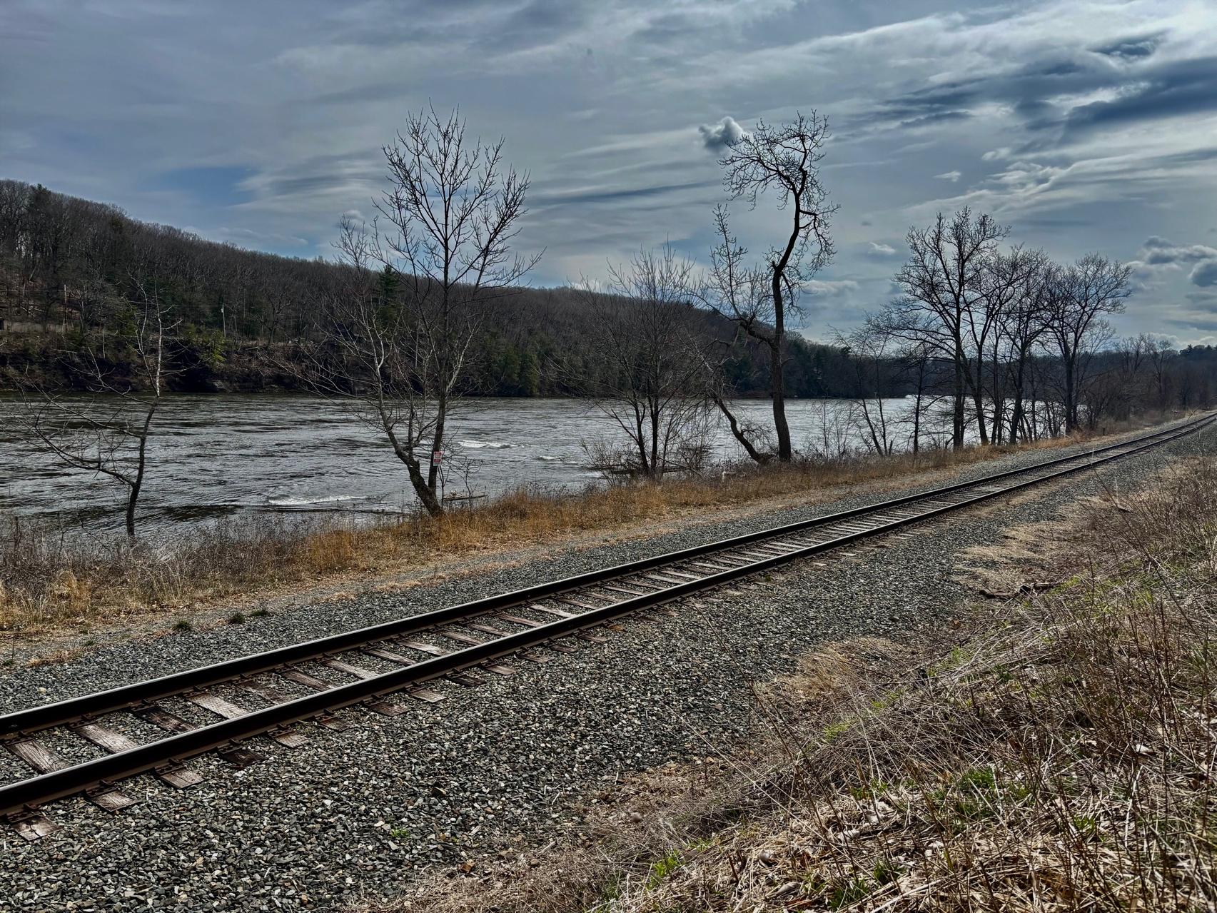 Holyoke's gradual development accelerated with the arrival of the railroad in 1845 and the construction of a dam on the Connecticut River along a 57-foot drop. The dam, built in 1848 by Boston investors, channeled water through a 7.5mile network of hand-dug canals and raceways, which transferred this water-energy through gears and shafts to over 25 mills at the industry's height. The railroad played a crucial role in distributing goods, but the mills’ reliance on the river as a power source and convenient waste disposal kept residents largely disconnected from the waterfront.