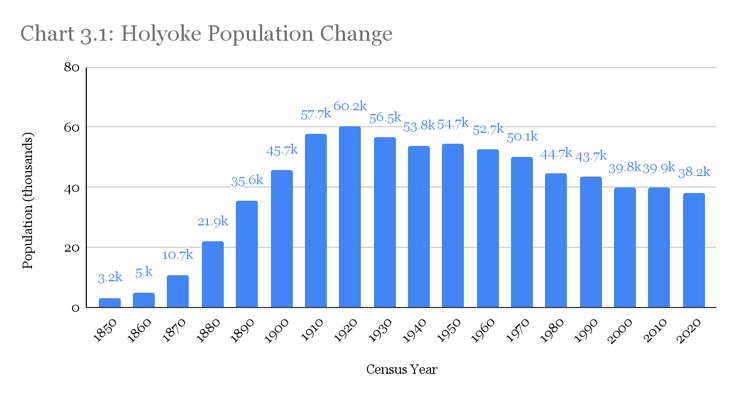 CHART 3.1: HOLYOKE POPULATION 1850-2020