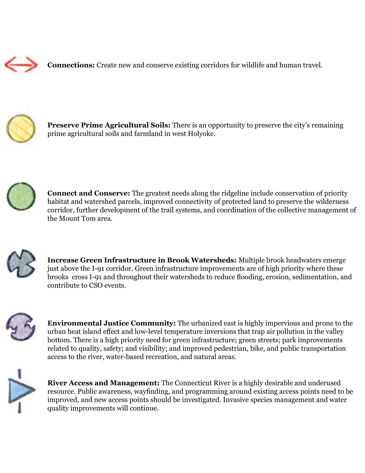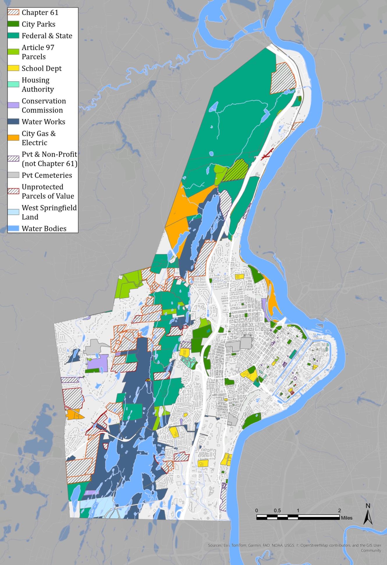 permanently protected, temporarily protected, or unprotected. It assesses and catalogs unmet recreational and resource protection needs while providing guidance on how the City can optimize its limited resources to effectively achieve Holyoke’s open space, conservation, and recreation goals.