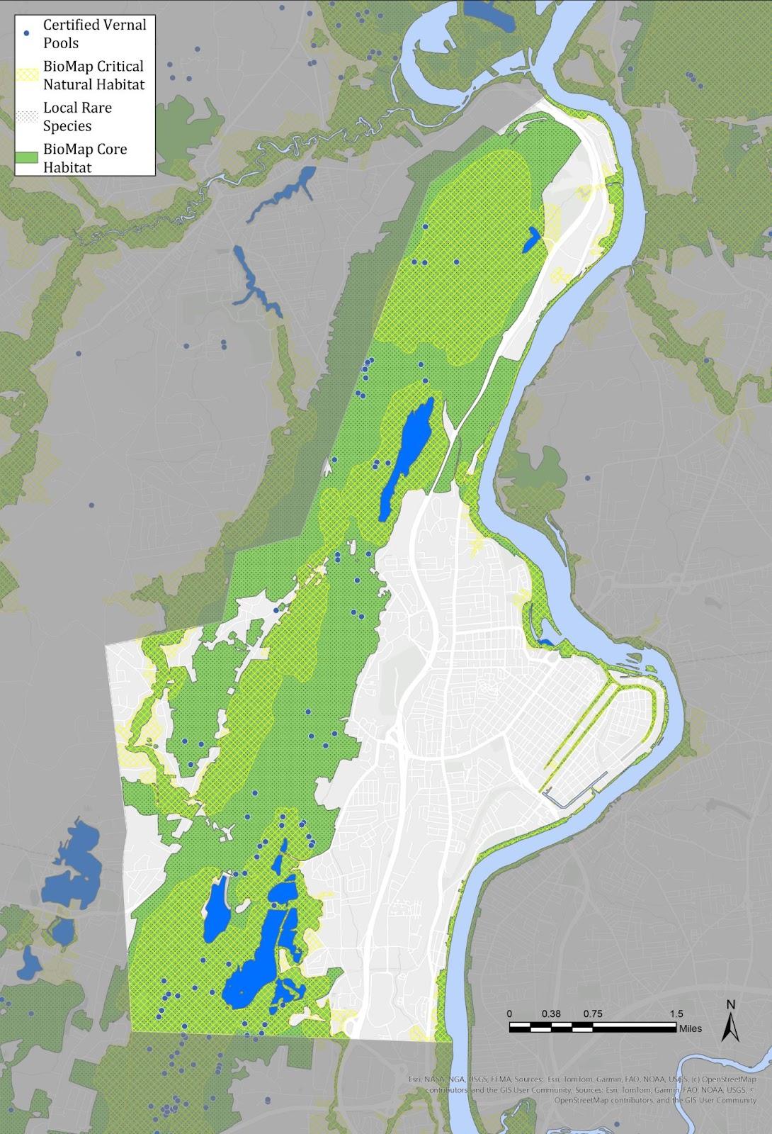 Mount Tom State Reservation is a beloved regional resource, offering 22 miles of hiking trails and panoramic views from its summits. The mountain range is designated as priority habitat by the National Heritage Endangered Species Program (NHESP), supporting one of the highest concentrations of rare and endangered species in Massachusetts. This forested corridor not only serves as a sanctuary and corridor for wildlife but also provides residents with opportunities for passive recreation and access to unique ecological settings uncommon in urban areas.