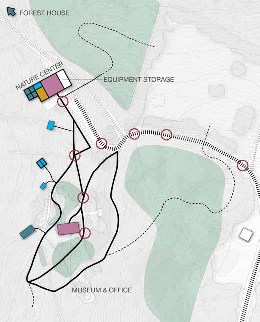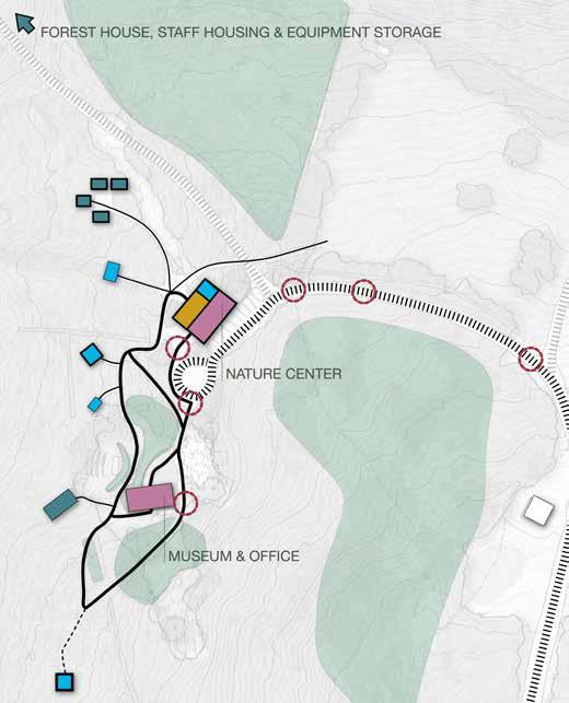 THE NATURE CENTER IS PERCHED IN A CENTRAL LOCATION AMONGST THE VARIOUS INFRASTRUCTURAL & ECOSYSTEM ELEMENTS.