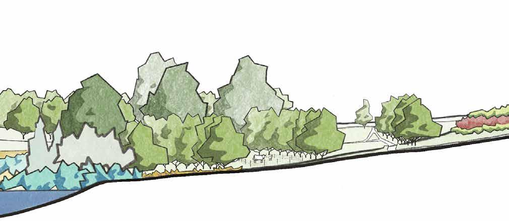 An important sightline from the Barn and Farmhouse to the Boathouse. A view from the Farm to the Animal Barn is important to maintain because farm programming happens in both places at once.